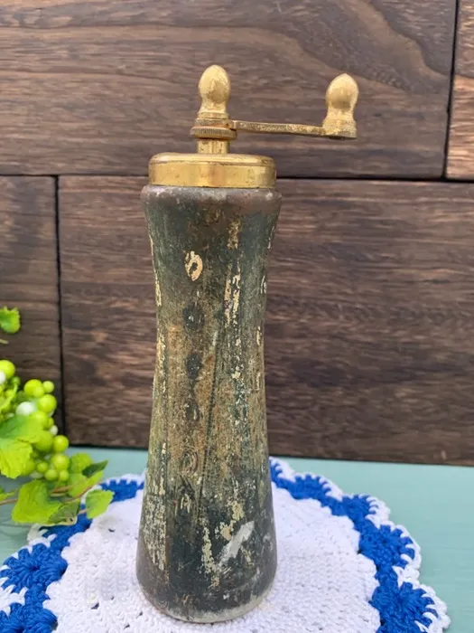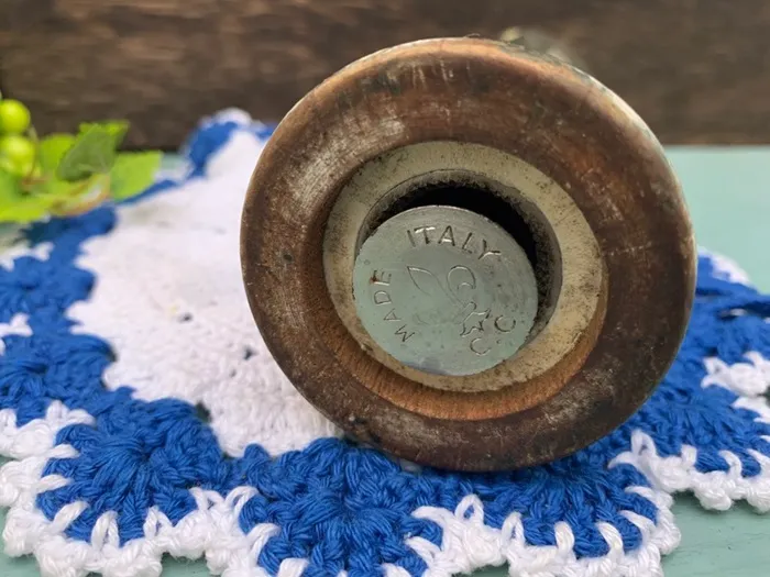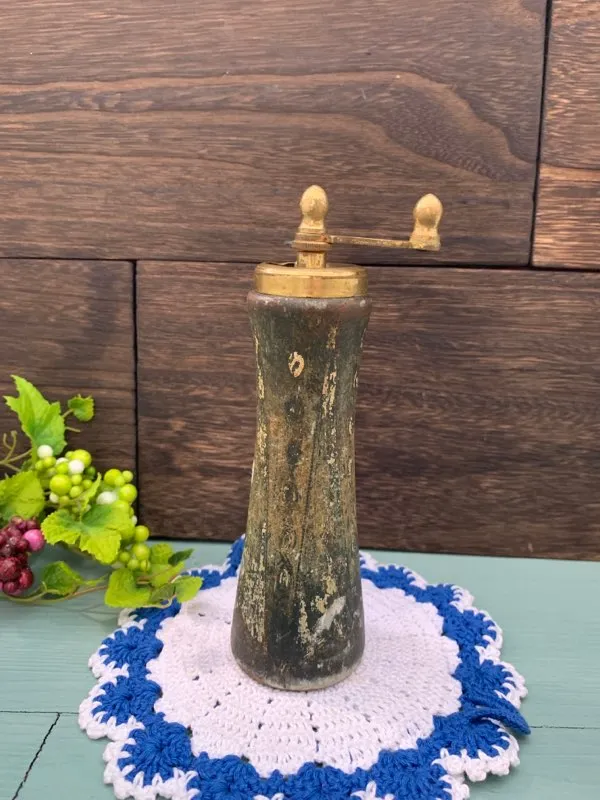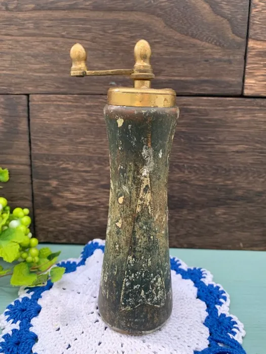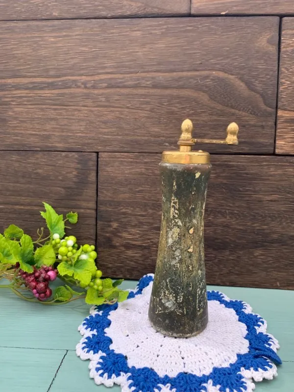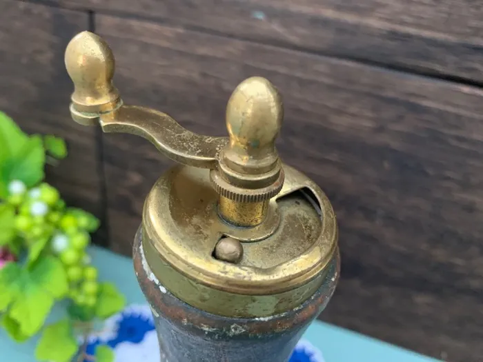 フランスの蚤の市で出会った、真鍮製のレバーと非常に古い木製がレトロで雰囲気のあるヴィンテージ手動ペッパーミル。ボトムにMade in Italyの刻印あり。ペッパーミルですが、中身の清掃は不可のため、インテリア用としてお楽しみください。