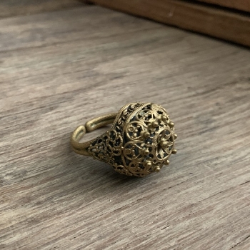 フランスの蚤の市で出会った、ラインストーンが施された連なるリーフのようなデザインがクラシックで美しいゴールドトーンヴィンテージリング・指輪。