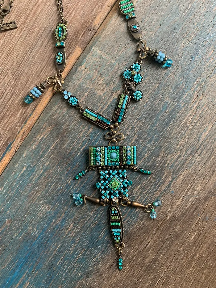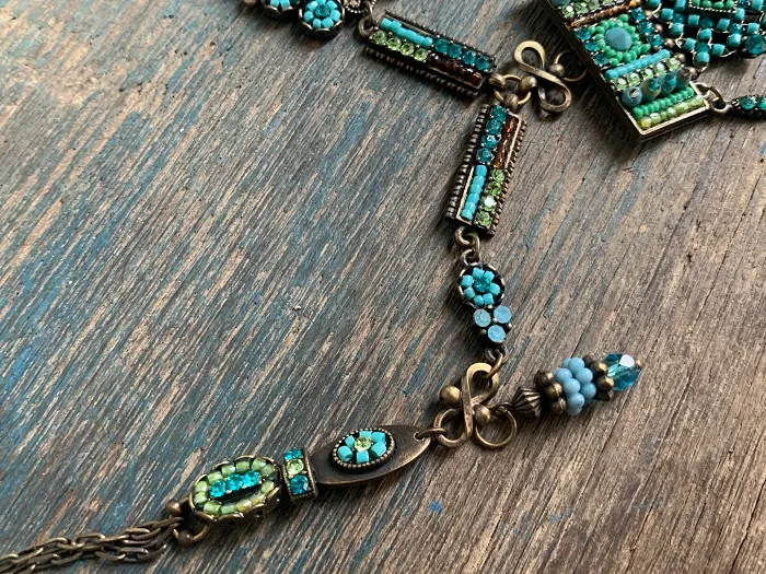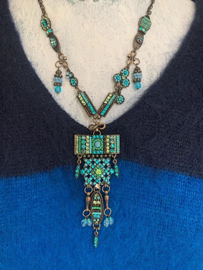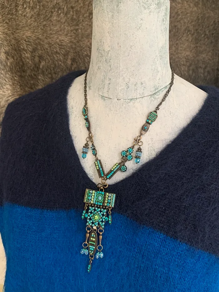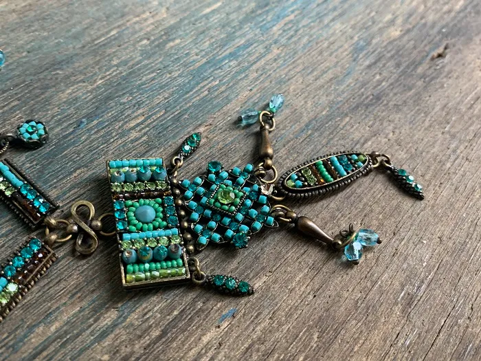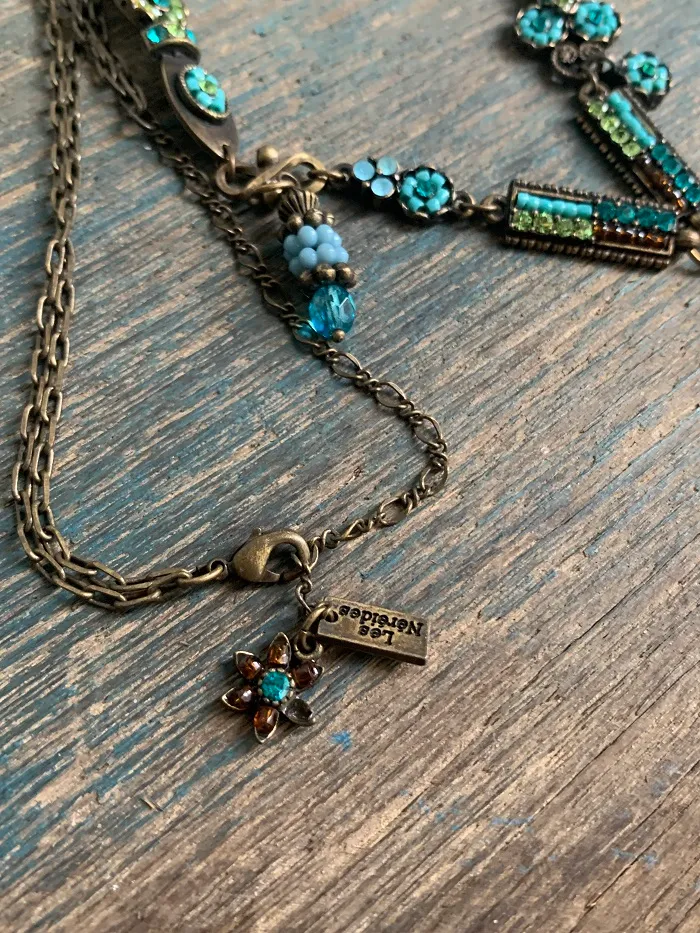 フランス 80s Les Nereides レネレイド ヴィンテージネックレス ブルービーズ 幾何学デザイン ラインストーン コスチュームジュエリー