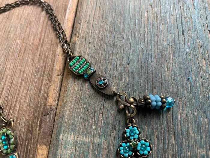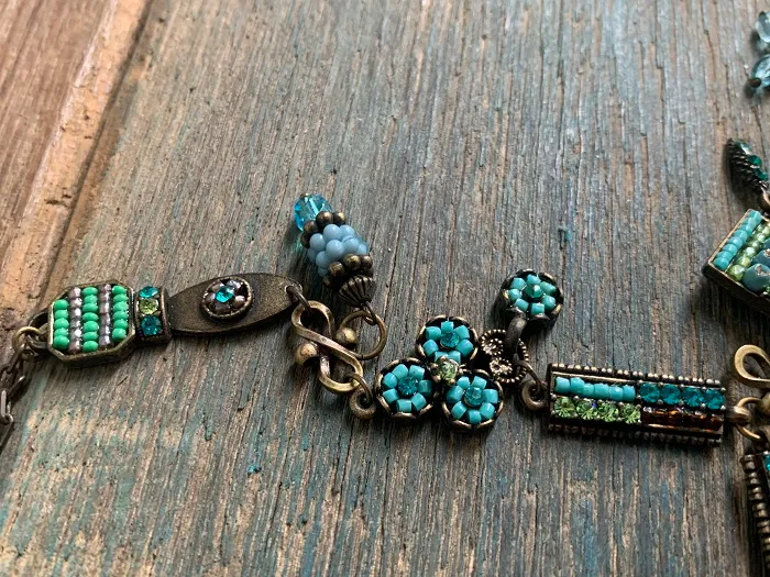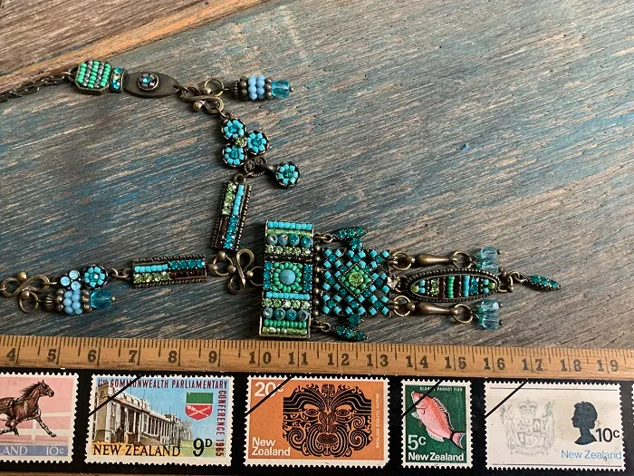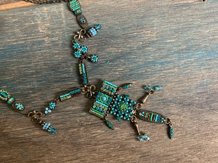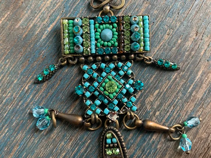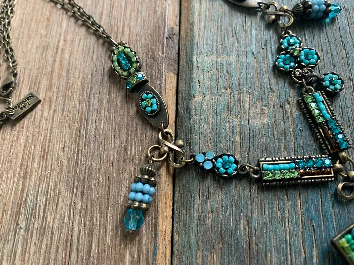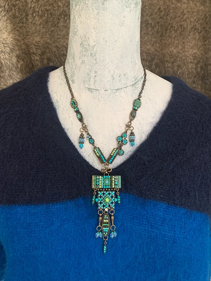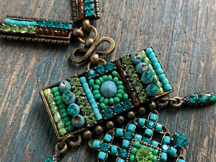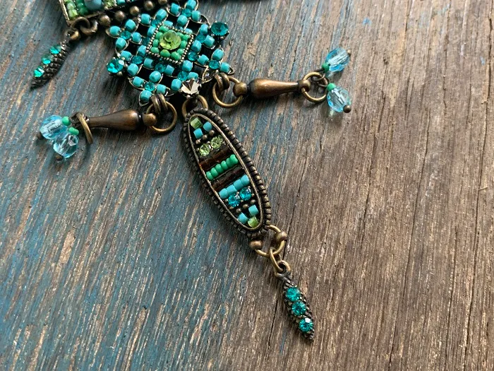 フランス 80s Les Nereides レネレイド ヴィンテージネックレス ブルービーズ 幾何学デザイン ラインストーン コスチュームジュエリー