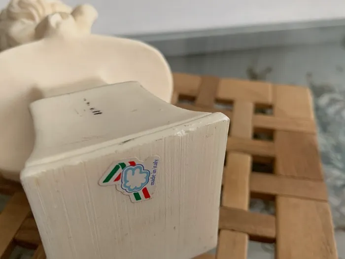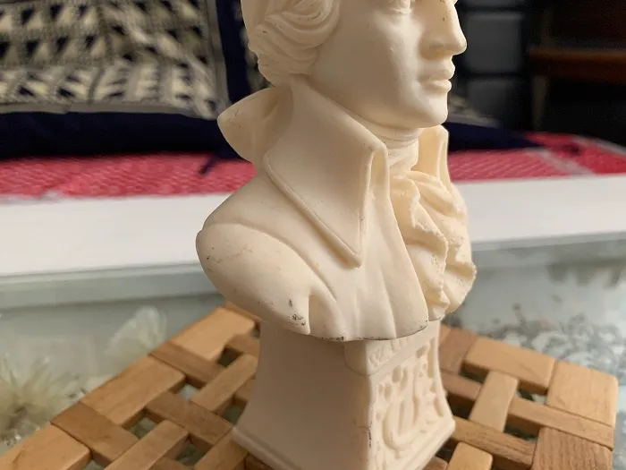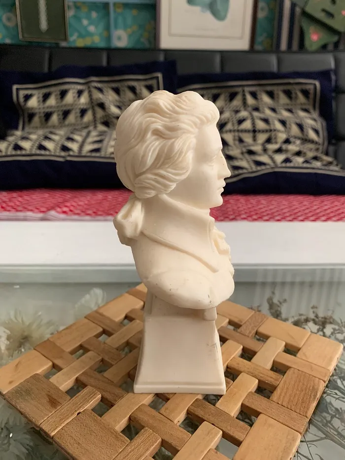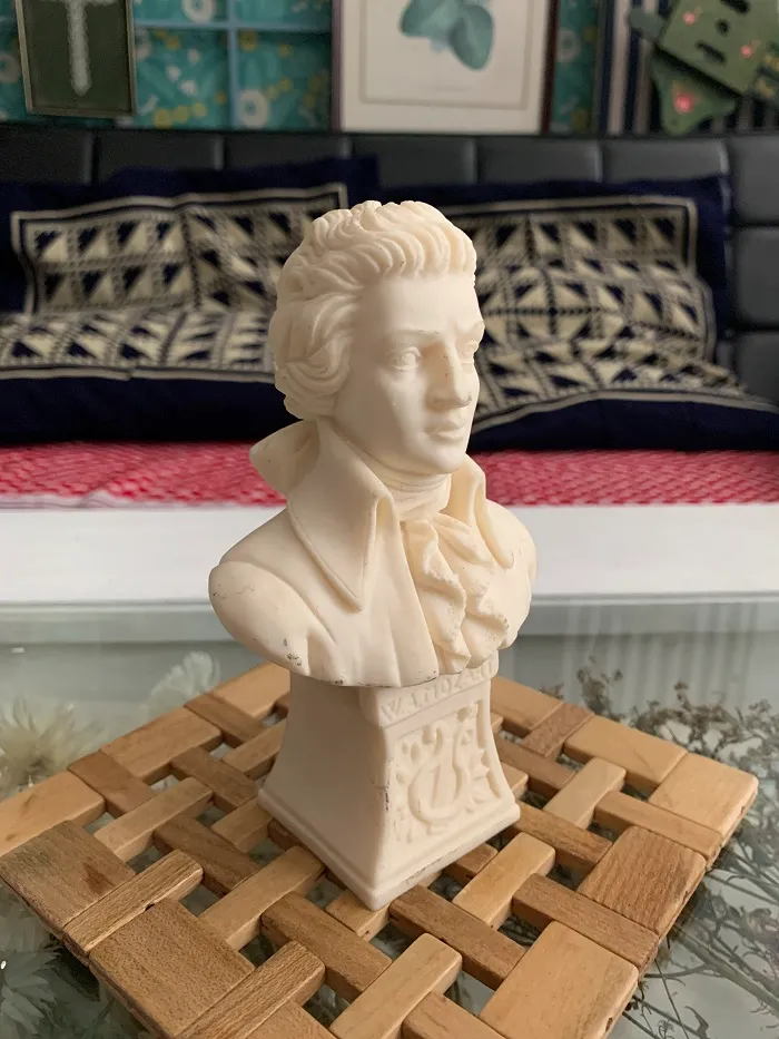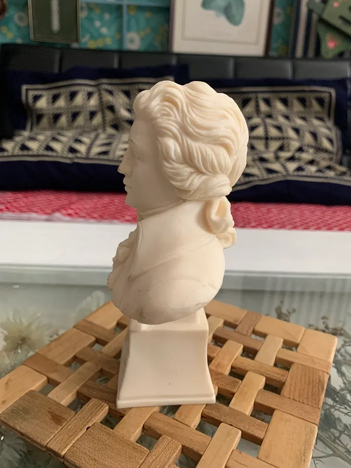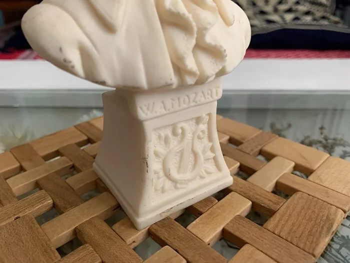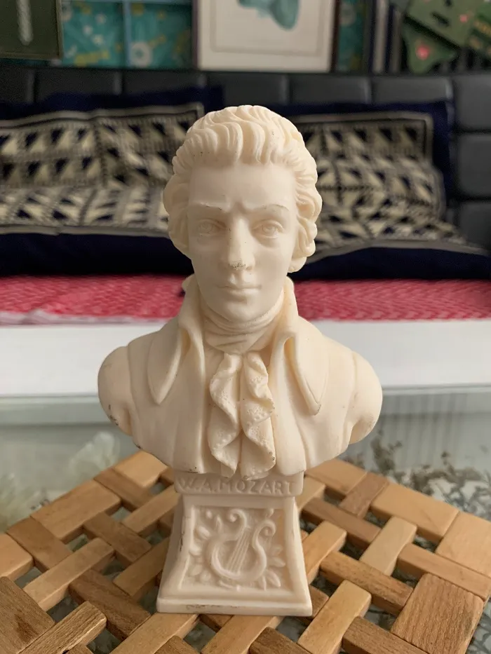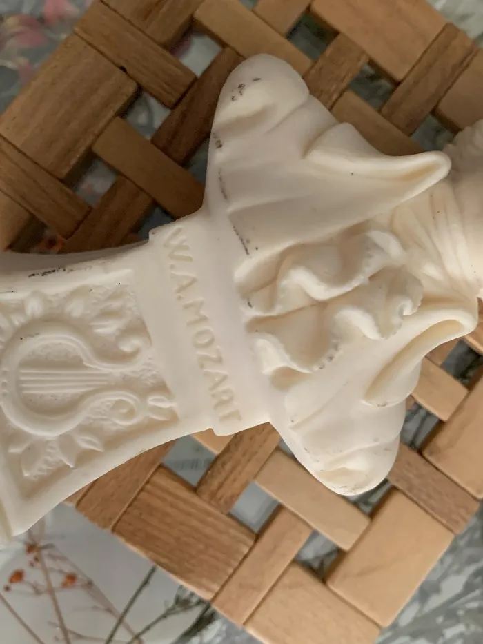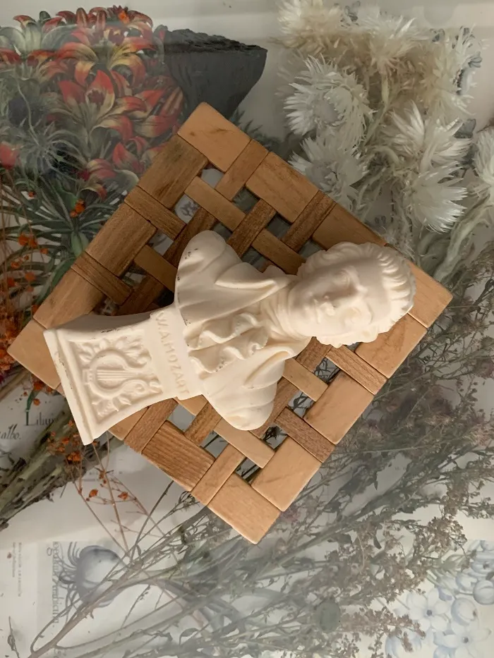 イタリア モーツァルト 胸像 アート ヴィンテージ イタリア モーツァルト 胸像 アート ヴィンテージ (BE0000183) 販売価格(税込)¥6,500在庫状態 : 在庫有りオーストリアの音楽家「Mozart(モーツァルト)」のヴィンテージミニチュアの胸像。非常にきめ細やかな作りが優美なアート作品です。ペーパーウェイトやインテリア雑貨としてご活用ください。イタリア製です。 コンディション ビンテージ・アンティーク品になりますので、経年による小さな傷や汚れ、色の剥がれ等ありますが、破損や欠け、大きなダメージはございません。 ブランド イタリア 生産国 不明 購入国 ドイツ 年代 不明 サイズ 高さ 約 13.5 cm 土台 約 4.2 cm x 4.5 cm 肩を含む幅 約 8.5 cm 重さ 約 340 g 素材 プラスターのような素材。詳細は不明ですがしっかりとした造りです。 値段 6,500円(税込み) 商品コード:BE0000183 数量 関連商品 -SOLDOUT-イタリア 70s ヴィンテージ ジュエリーボックス 化粧箱 小物入れ レザー 革 ワインレッド -SOLDOUT-イタリア 60s ムラノガラス 鹿 置物 ヴィンテージ -SOLDOUT-イタリア 70s ミロのヴィーナス像 インテリア雑貨 アンティーク フランス 70s ナポレオン ブロンズ 胸像 ヴィンテージ イタリア 70s アイボリ 紫のスミレ ヴィンテージ 小物入れ