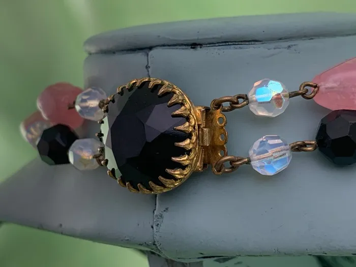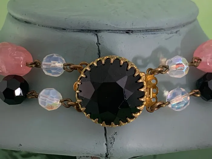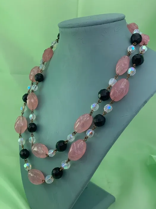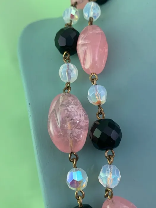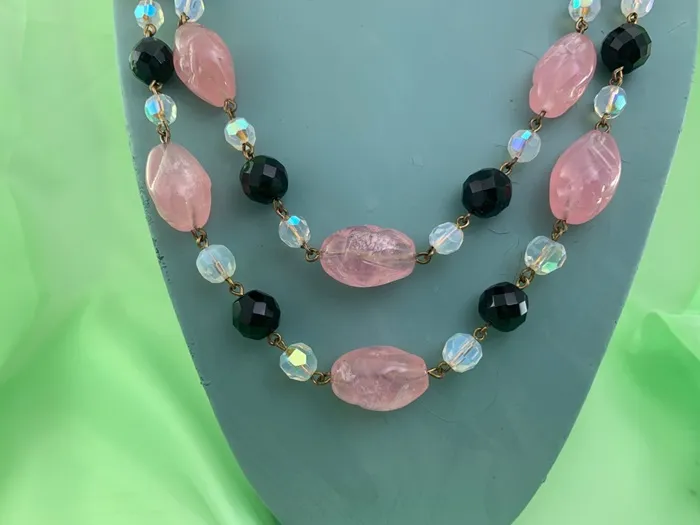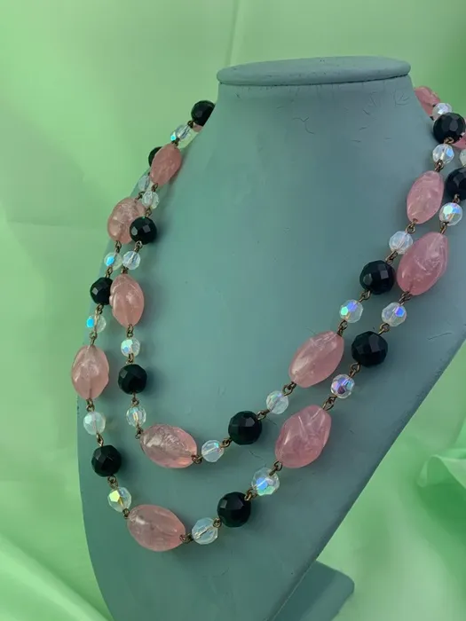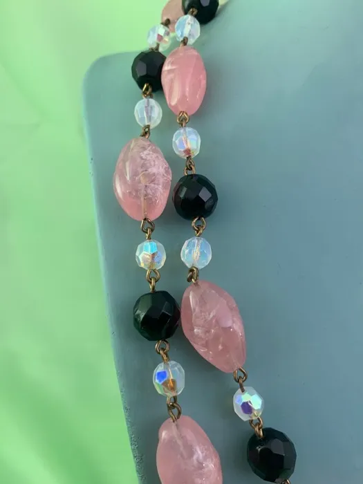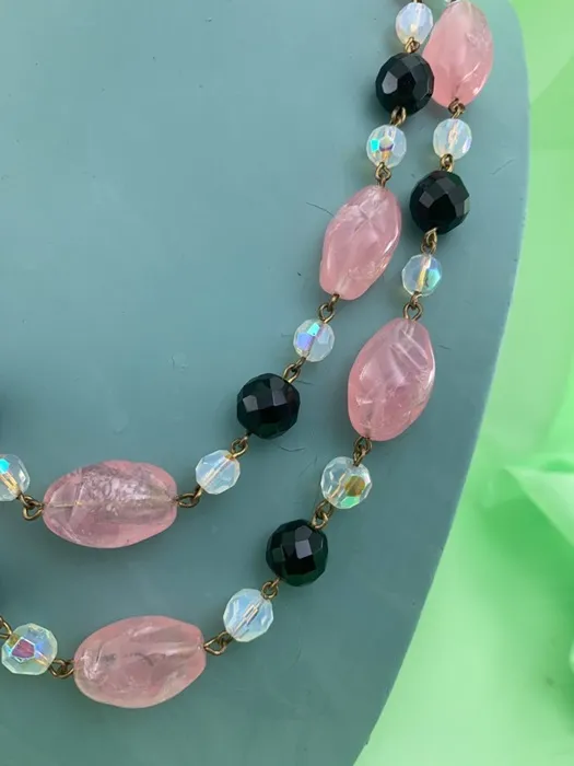 フランス 60s ネックレス ガラス ピンク ブラック ヴィンテージ フランス 60s ネックレス ガラス ピンク ブラック ヴィンテージ (GC0000371) 販売価格(税込)¥6,500在庫状態 : 在庫有りフランスの蚤の市で出会った、色鮮やかなピンクのガラスビーズとブラックビーズのコントラストが優雅で美しいヴィンテージ2連ネックレス。 コンディション 特記されていない限り、大きなダメージ等はございませんが、ヴィンテージ・アンティーク品になりますので、使用感や傷等はございます。お写真をご参照の上ご購入頂きますようお願い申し上げます。 ブランド 不明 生産国 不明 購入国 フランス 年代 1960年頃 サイズ トータルの長さ 約 47 cm 素材 メタル/ガラス 値段 6,500円(税込み) ご購入頂く前に、必ずこちらの「お買い物ガイド」をご参照ください。 商品コード:GC0000371 数量 関連商品 アメリカ 60s ネックレス ガラスビーズ オレンジ アンティーク フランス 60s ロングネックレス ピンク ビーズ ヴィンテージ -SOLDOUT-ベルギー 60s 木製ビーズ 大ぶり ピンク ヴィンテージ ネックレス -SOLDOUT-ベルギー 60s ヴィンテージネックレス ショッキングピンク 木製ビーズチェーン コスチュームジュエリー フランス 80s ネックレス ピンクガラス ヴィンテージ