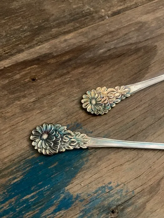 フランス 70s お花 アンティーク スプーン カトラリー フランス 70s お花 アンティーク スプーン カトラリー (AT000040) 販売価格(税込)¥2,200在庫状態 : 在庫有りフランスの蚤の市で出会った、お花のレリーフがクラシックで可愛らしいヴィンテージ・アンティークスプーン。 コンディション 特記されていない限り、大きなダメージ等はございませんが、ヴィンテージ・アンティーク品になりますので、使用感や傷等はございます。お写真をご参照の上ご購入頂きますようお願い申し上げます。 ブランド 不明 生産国 不明 購入国 フランス 年代 1970年頃 サイズ 長さ 約 17.4 cm 重さ 素材 メタル 値段※1本の値段 2,200円(税込み) ご購入頂く前に、必ずこちらの「お買い物ガイド」をご参照ください。 商品コード:AT000040 数量 関連商品 フランス 50s Argental アンティーク ディナースプーン フランス 50s 月桂樹 アンティーク ディナー スプーン フランス 50s ディナースプーン アンティーク ラージ カトラリー -SOLDOUT-フランス 80s 大型 ヴィンテージ フォークスプーン アメリカ 70s レードル・スプーン ニッケルシルバー ヴィンテージ