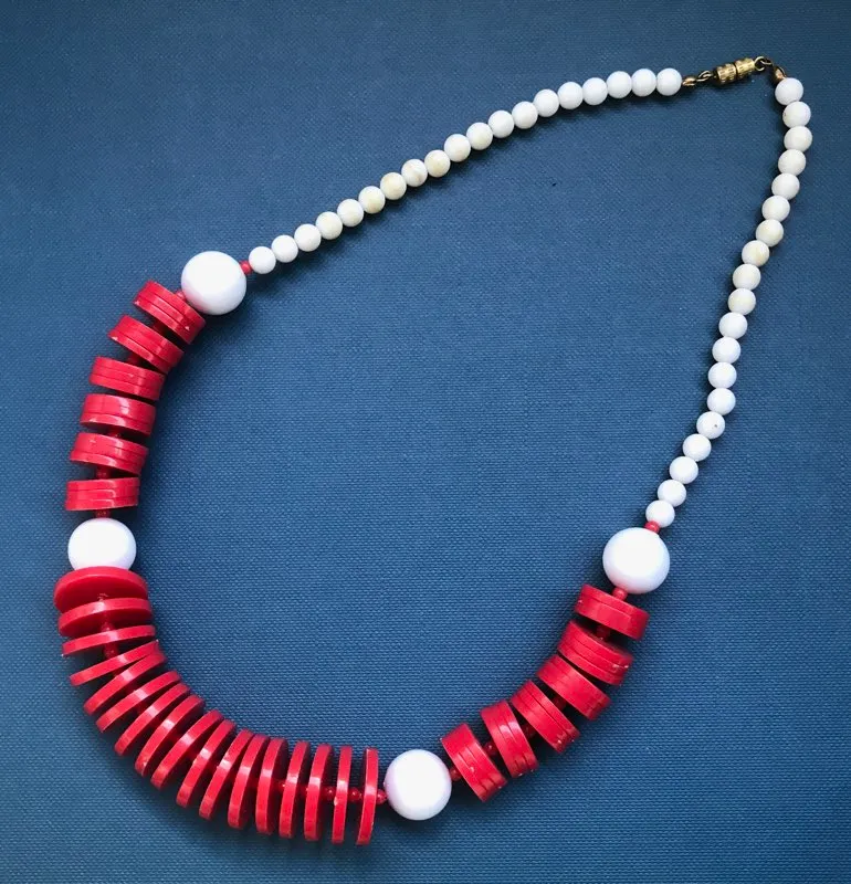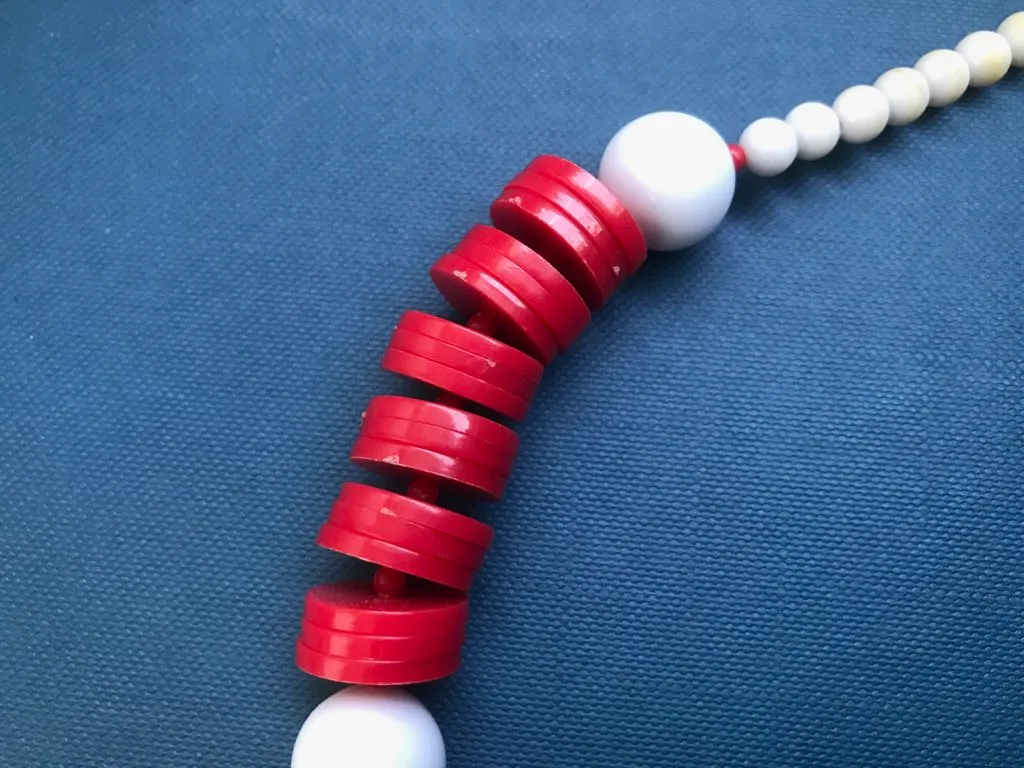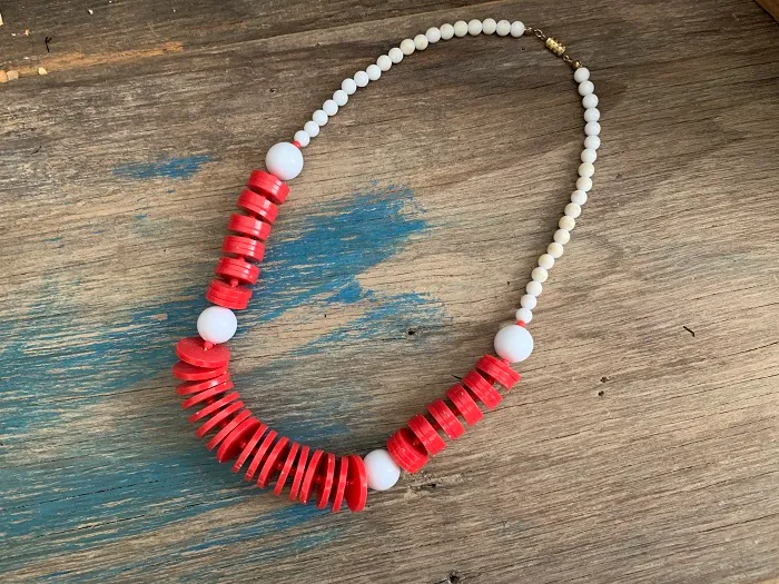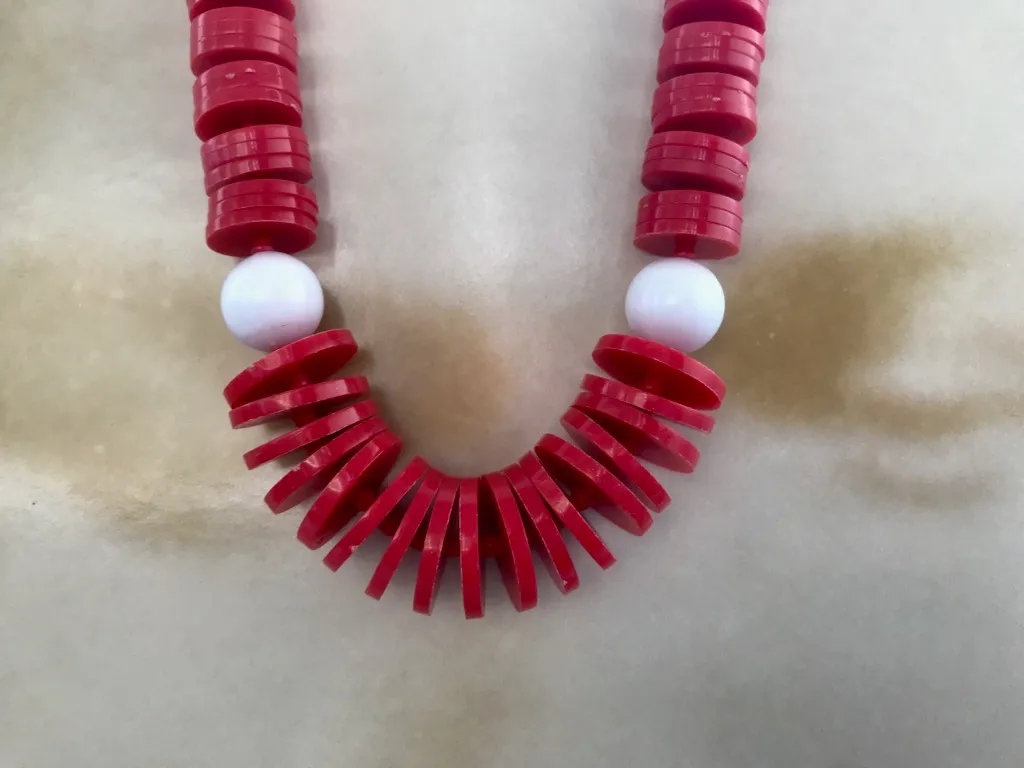 アメリカ 70s ネックレス 赤 白 プラスチック ヴィンテージ  (GC000028)