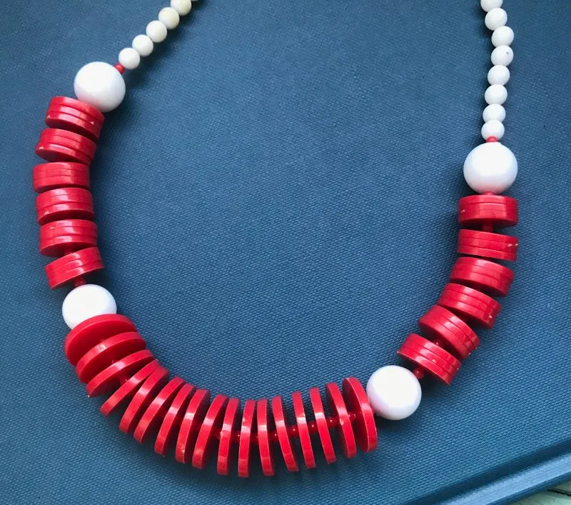 アメリカ 70s ネックレス 赤 白 プラスチック ヴィンテージ