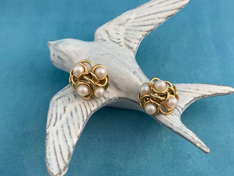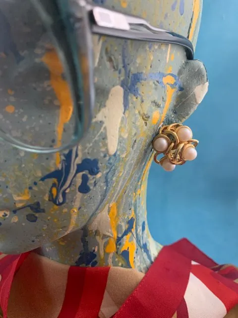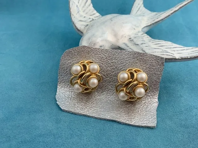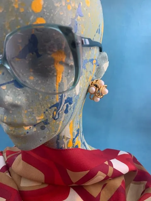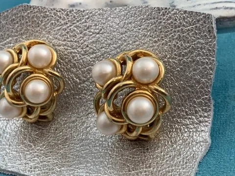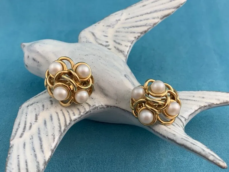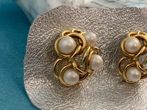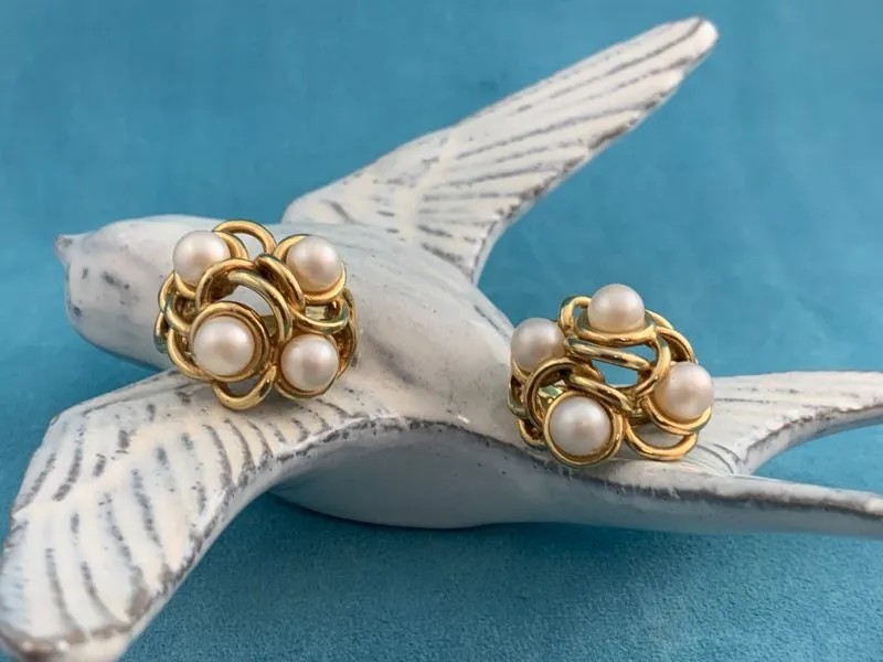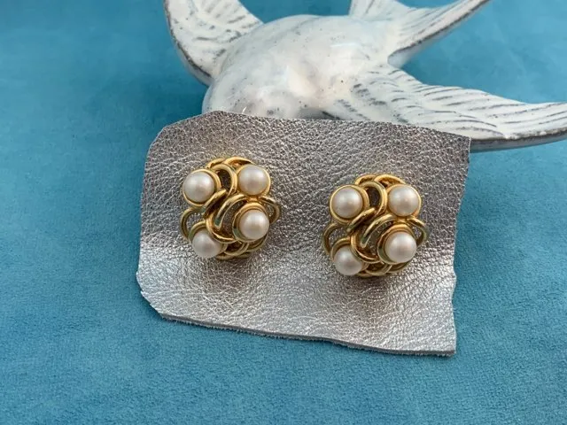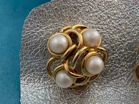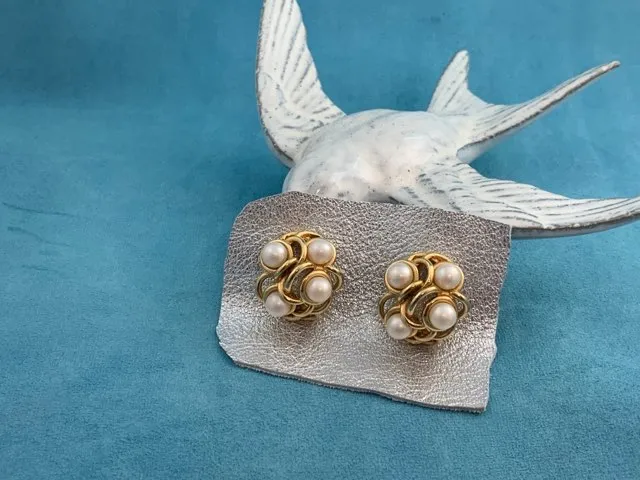 -SOLDOUT-フランス 80s GONTIE Paris ヴィンテージイヤリング ゴールドトーン イミテーションパール お花 大ぶり コスチュームジュエリー