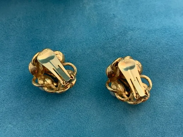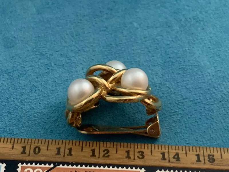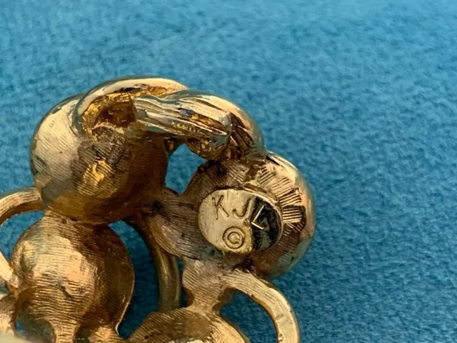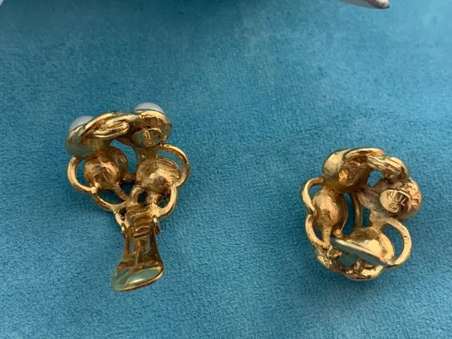 アメリカ 80s K.J.L ゴールド イヤリング イミテーションパール ラインストーン ヴィンテージ