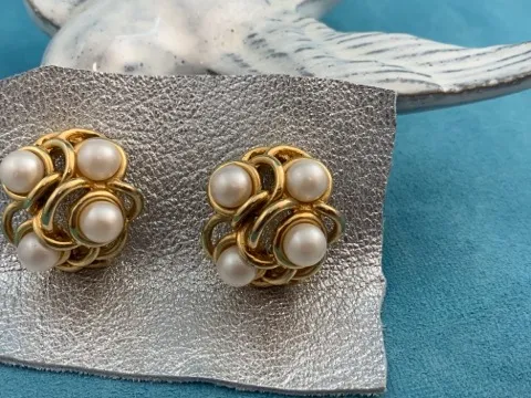 -SOLDOUT-フランス 80s レ・ベルナール パール ゴールド 大ぶり ヴィンテージ イヤリング