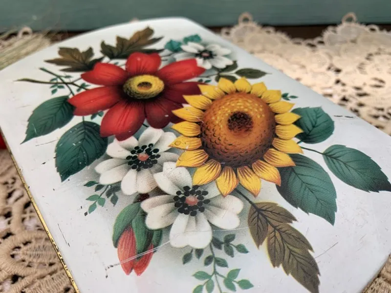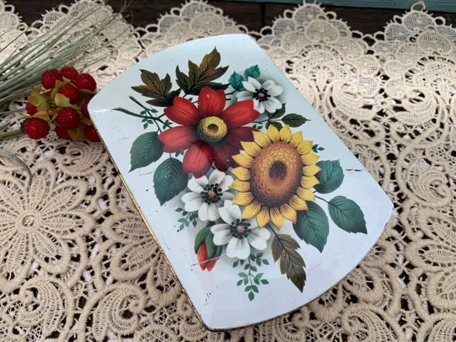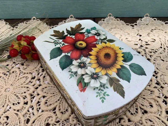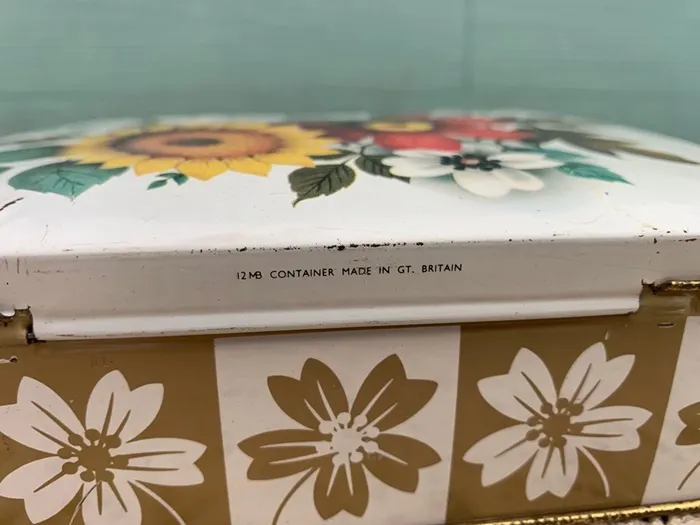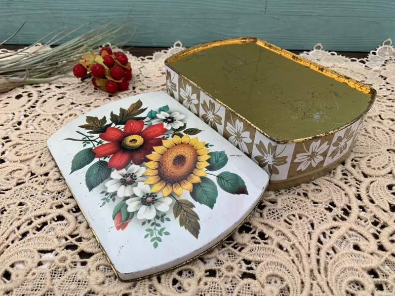 イギリス 70s ティン缶 ひまわり フラワー 花柄 アンティーク  (BC000017)