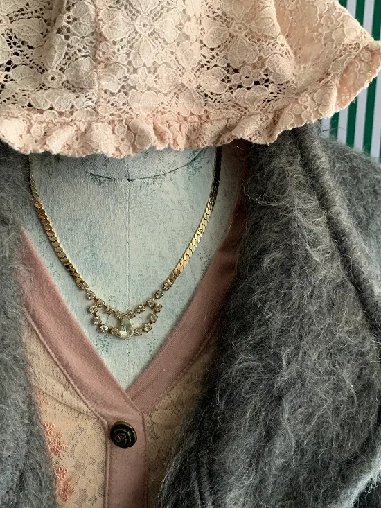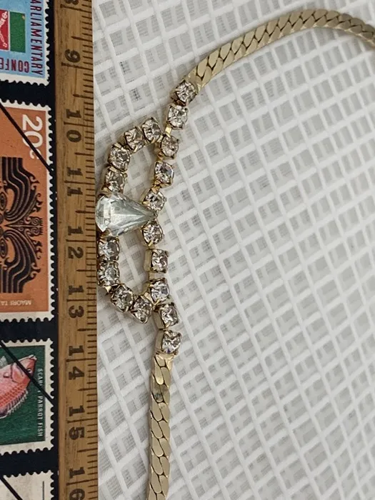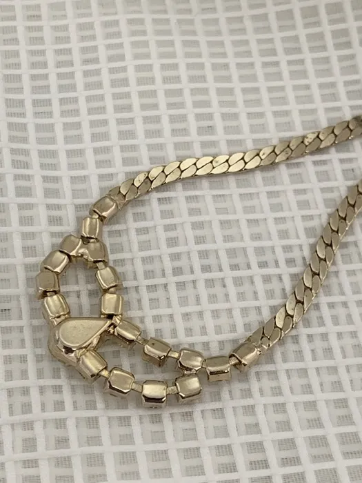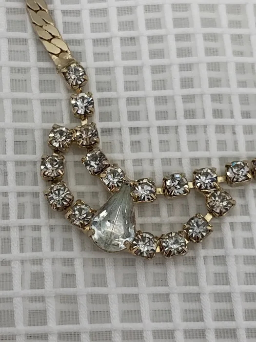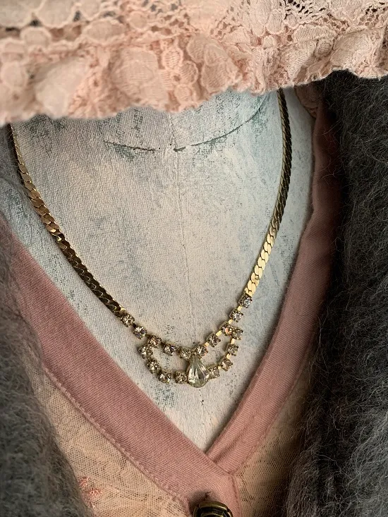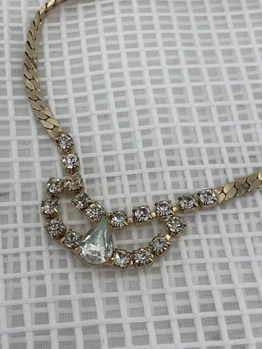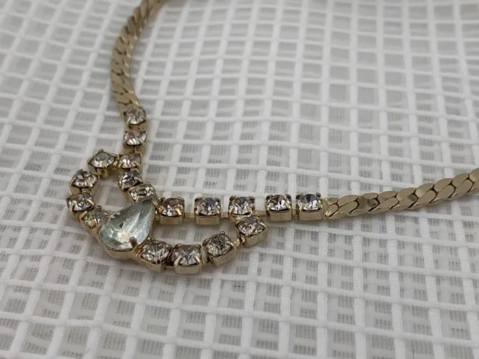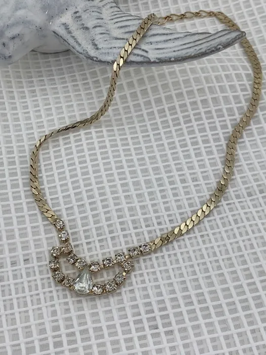 フランスの蚤の市で出会った、フラットスネークチェーンとガラスのラインストーンがクラシックで美しいヴィンテージネックレス。