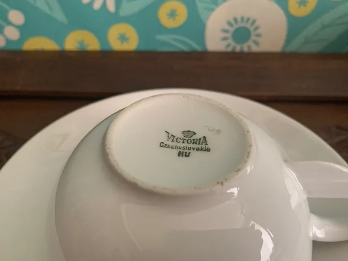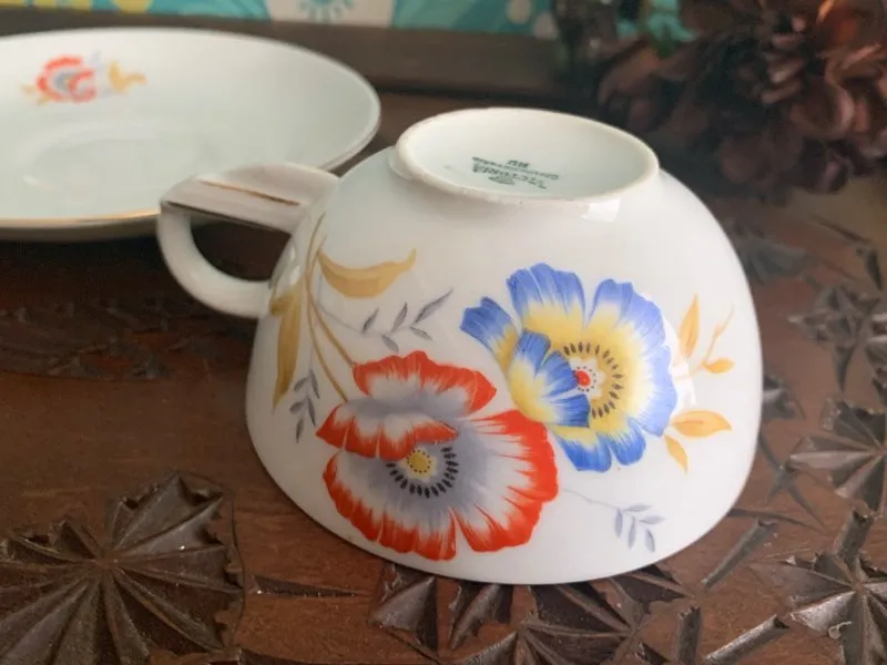 -SOLDOUT-チェコスロバキア 1800年代 Fischer & Mieg コーヒーカップ&ソーサー陶器 ハンドペイント お花 アンティーク デミタスカップ