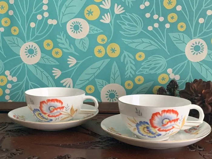 -SOLDOUT-チェコ 90s Czech Republic H & C Original Rosa Porzellan お花 アンティーク ピンク 陶器 コーヒ・ティーカップ