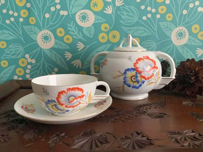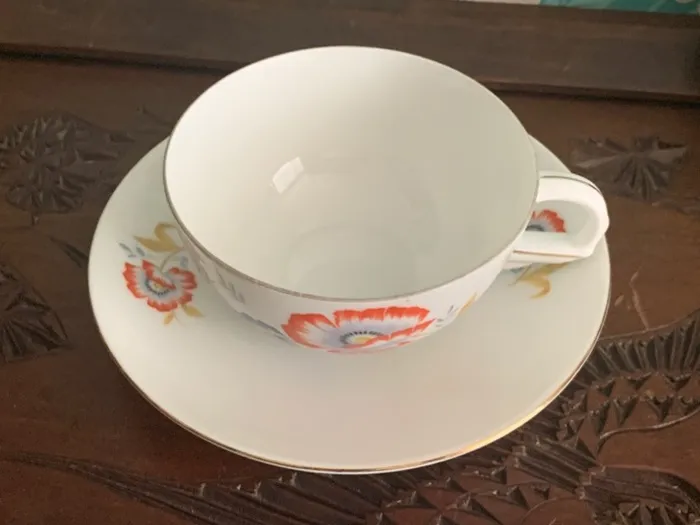 -SOLDOUT-イギリス 30s〜40s STANDARD CHINA(スタンダードチャイナ) オレンジの花 ボタニカル ヴィンテージ・アンティーク 陶器 コーヒーカップ&ソーザー ケーキ皿 3点セット