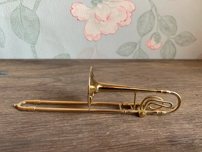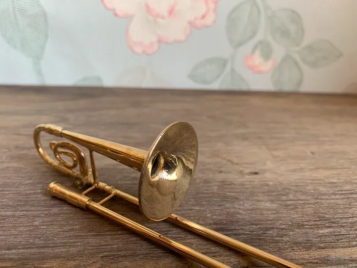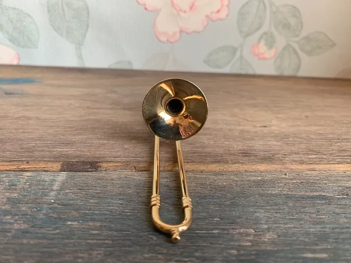 アメリカのアンティークマーケットで出会った、ゴールドのメタルのトロンボーンがクラシックで美しいヴィンテージの置物。