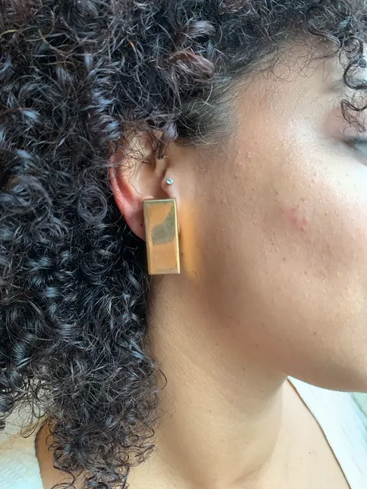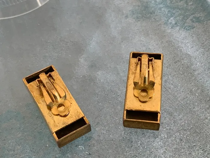 フランスの蚤の市で出会った、長方形のゴールドバーがレトロで可愛らしいビンテージイヤリング。