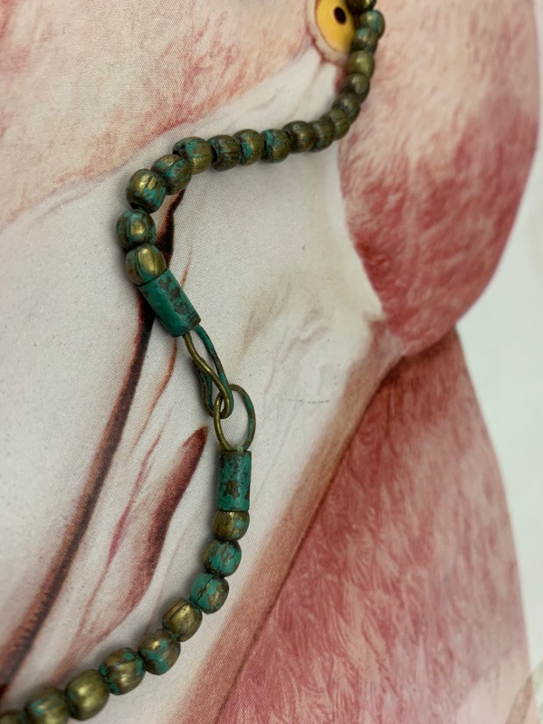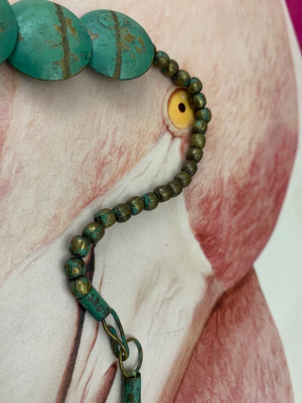 ベルギーの蚤の市で出会った、円盤型のクラシックグリーンの大粒ビーズが優雅で美しいアフリカン・民族調ヴィンテージネックレス。