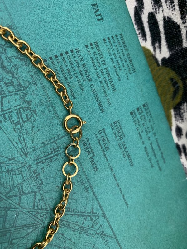 -SOLDOUT-フランス 80s Sonia Rykiel(ソニアリキエル) ゴールド調 ハート型 網目 ロゴ ヴィンテージネックレス