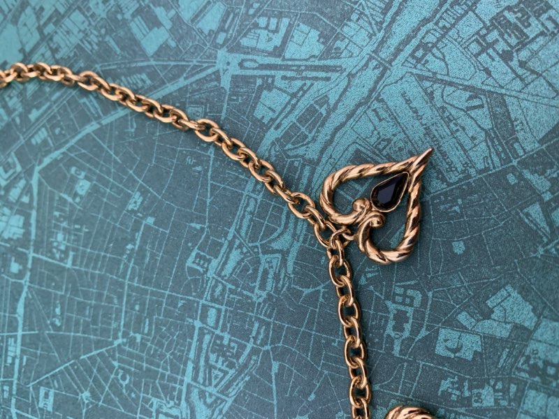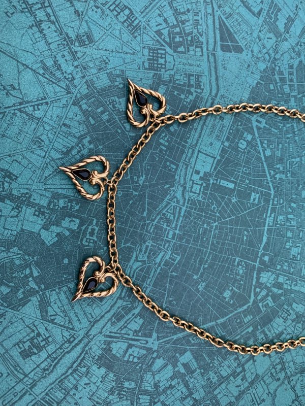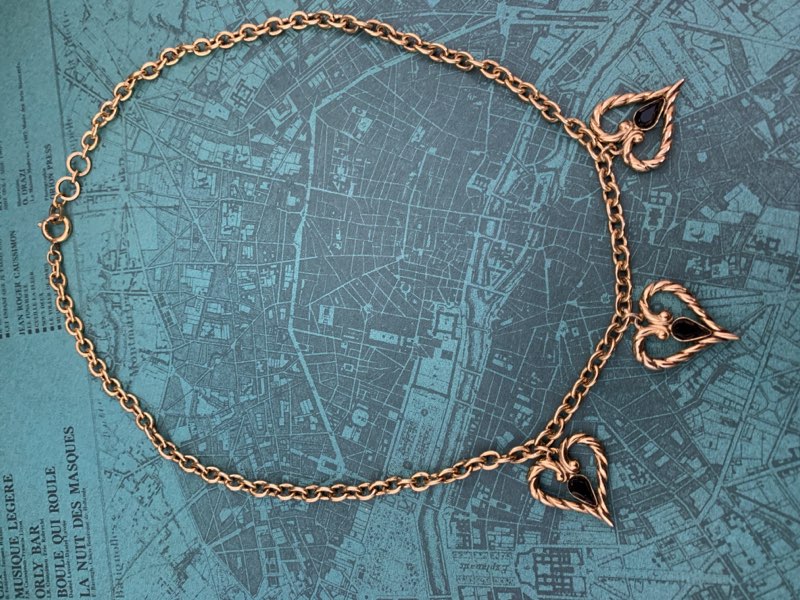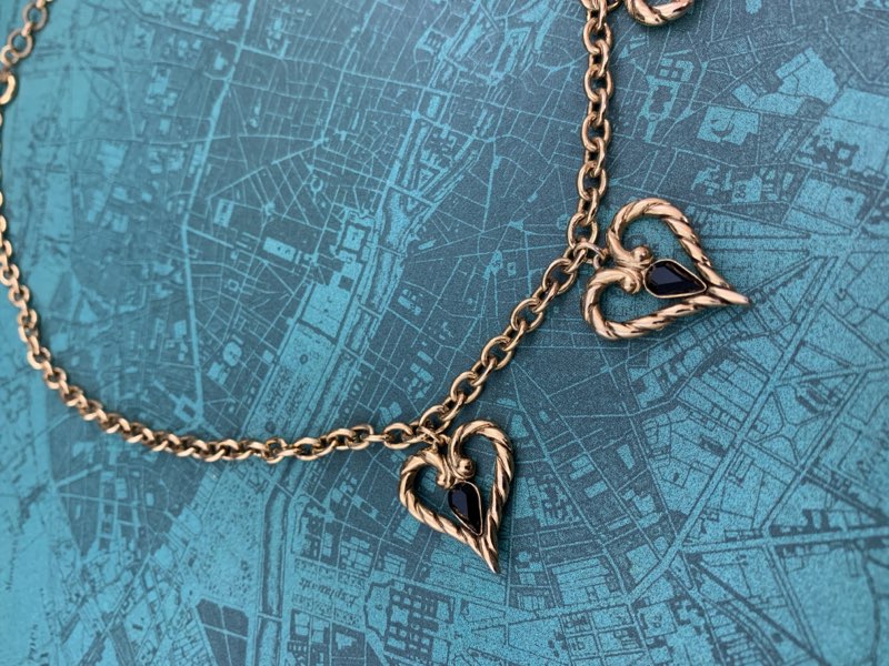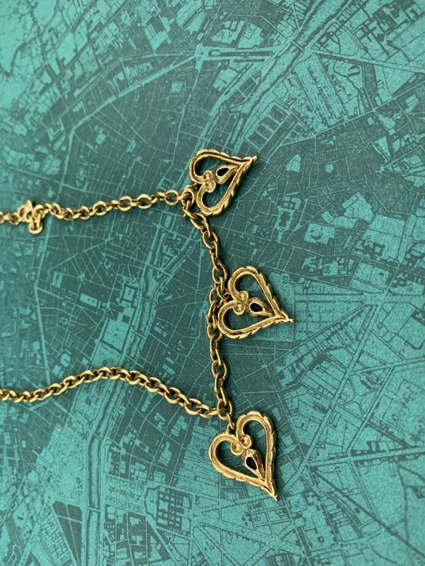 -SOLDOUT-フランス 80s ヴィンテージネックレス ゴールドチェーン ハート 大粒ガラスラインストーン コスチュームジュエリー