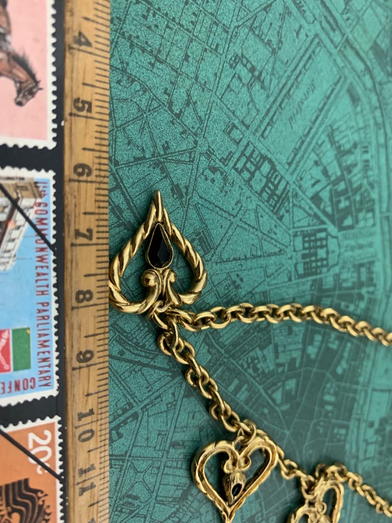 -SOLDOUT-アメリカ 80s ヴィンテージネックレス ハート ゴールド調 ブラウングリーン コスチュームジュエリー