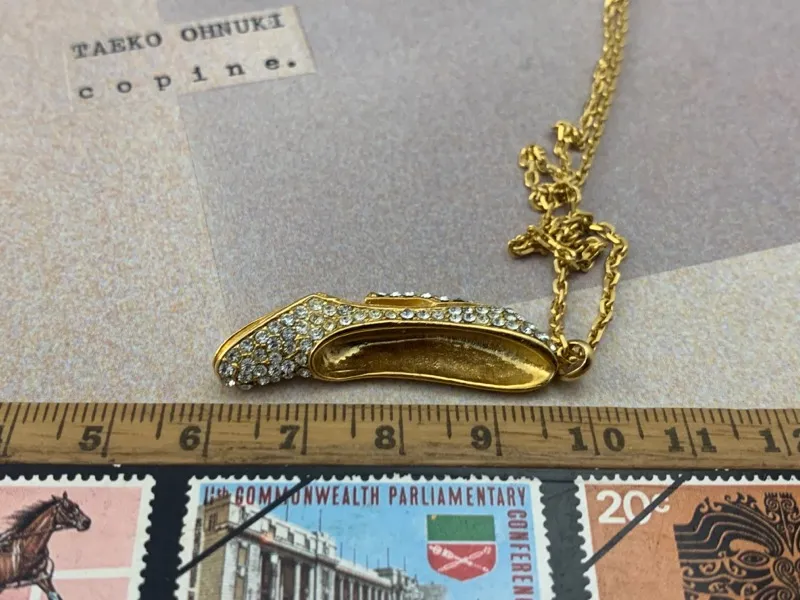 フランス 70s ネックレス ハイヒール ゴールド ヴィンテージ フランス 70s ネックレス ハイヒール ゴールド ヴィンテージ (GC0000873) 販売価格(税込)¥5,200在庫状態 : 在庫有りフランスの蚤の市で出会った、ラインストーンがぎっしりと敷き詰められたゴールドトーンのハイヒールがクラシックで可愛らしいヴィンテージネックレス。 コンディション 特記されていない限り、大きなダメージ等はございませんが、ヴィンテージ・アンティーク品になりますので、使用感や傷等はございます。お写真をご参照の上ご購入頂きますようお願い申し上げます。 ブランド 不明 生産国 不明 購入国 フランス 年代 1970年頃 サイズ 半分の長さ 約 30 cm 素材 メタル/ラインストーン 値段 5,200円(税込み) ご購入頂く前に、必ずこちらの「お買い物ガイド」をご参照ください。 商品コード:GC0000873 数量 関連商品 -SOLDOUT-アメリカ 70s リボン ラインストーン イミテーションパール ゴールド調 2連ヴィンテージ ネックレス コスチュームジュエリー ブライダル アメリカ 70s ネックレス パープル ホワイト ヴィンテージ ドイツ 70s ネックレス ラインストーン ゴールド ヴィンテージ -SOLDOUT-ドイツ 70s ヴィンテージネックレス ブルーグリーン ガラスラインストーン ブライダル -SOLDOUT-ドイツ 70s ラインストーン リボン チョーカー ネックレス ヴィンテージ コスチュームジュエリー