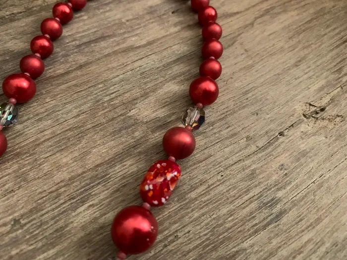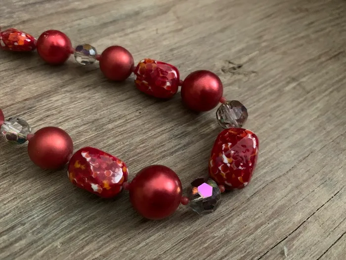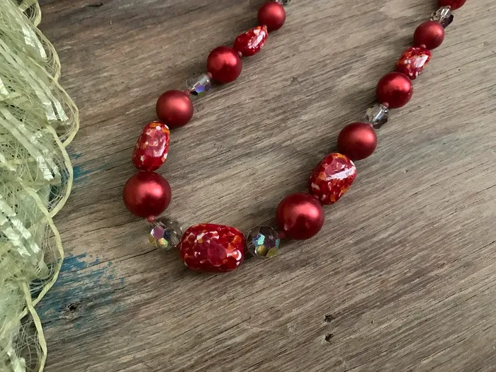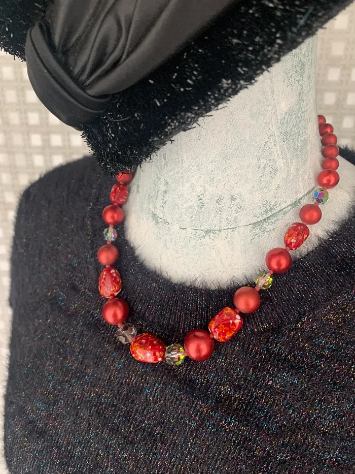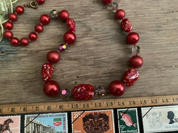 ドイツ 80s ネックレス 赤 ビーズ ガラス ヴィンテージ  (GC0000985)