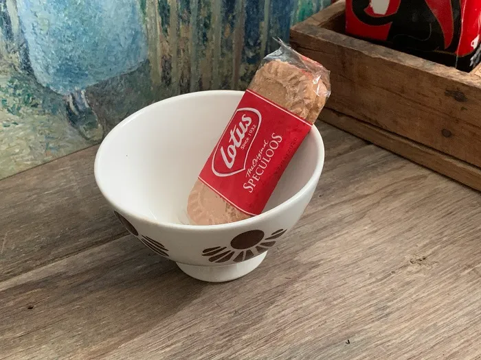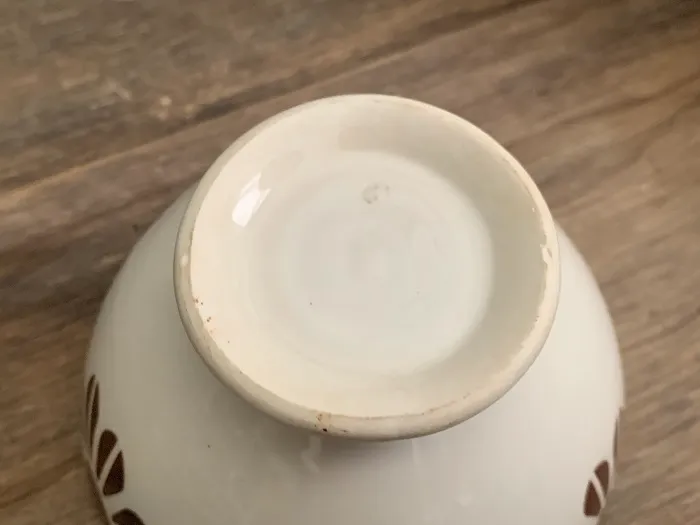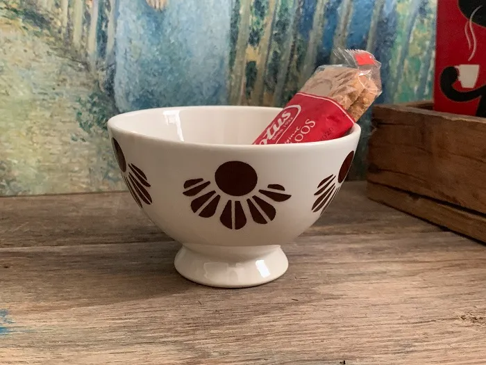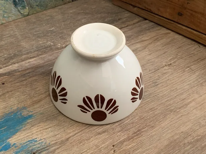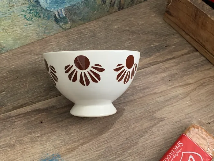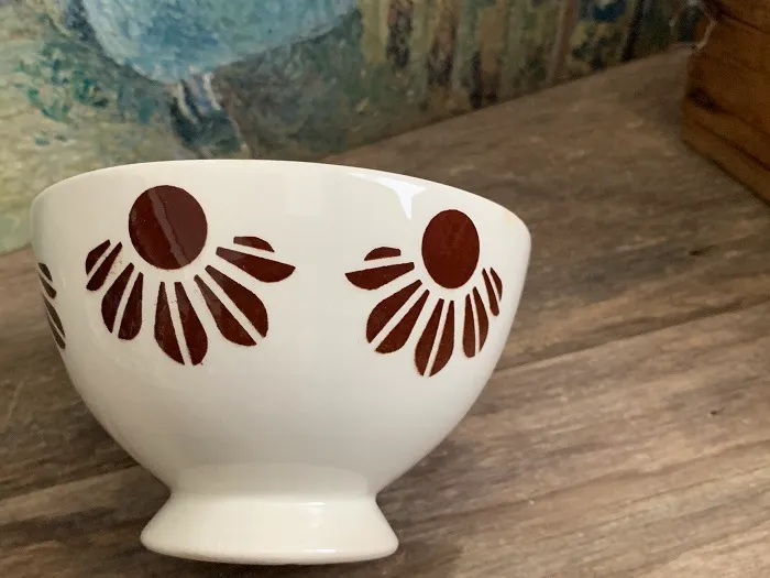 ベルギーの蚤の市で出会った、あずき色の幾何学模様がユニークで可愛らしいヴィンテージカフェオレボウル。