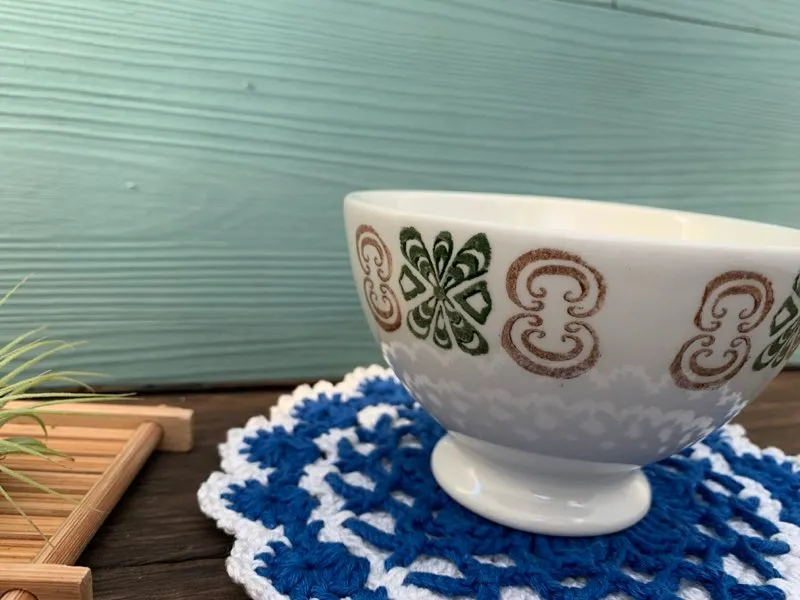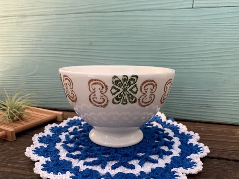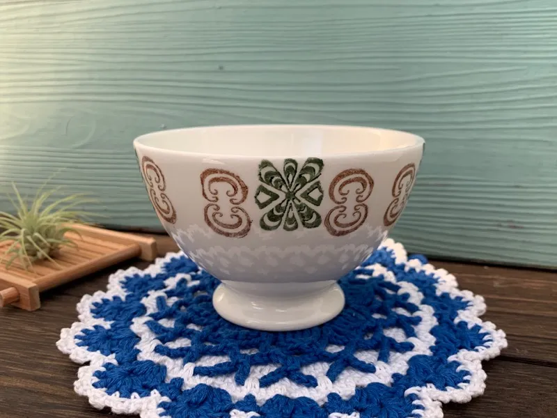 ベルギーの蚤の市で出会った、幾何学模様が描かれたクラシックで可愛らしいヴィンテージカフェオレボウル。