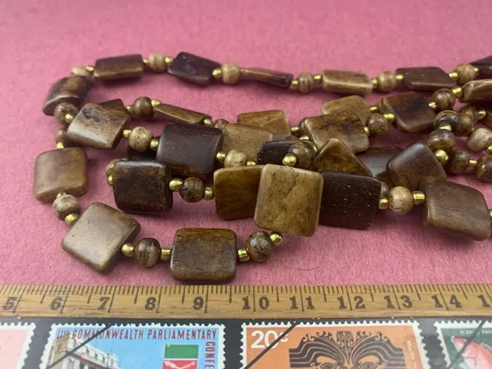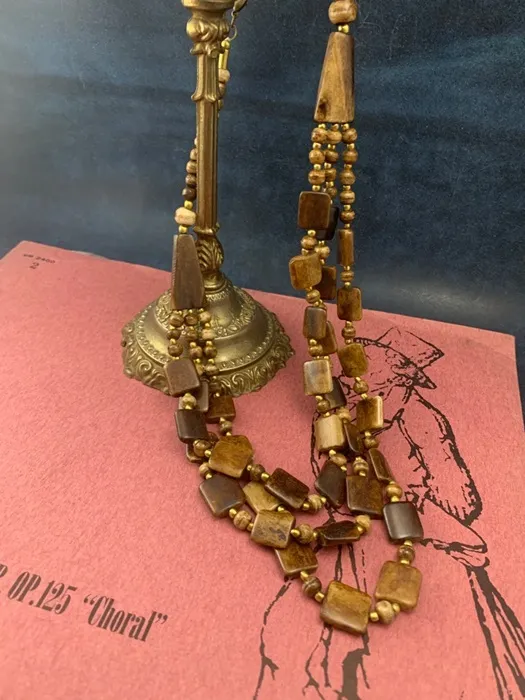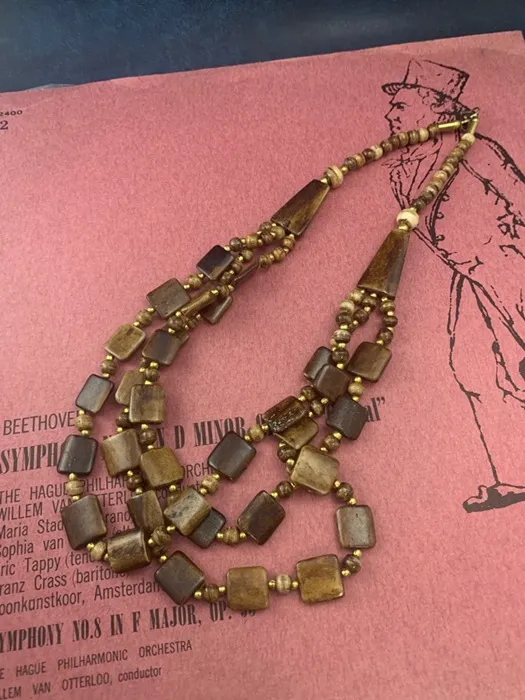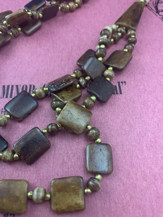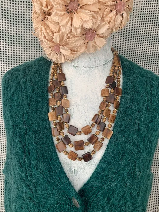 アメリカ 80s ネックレス 木調 プラスチック ヴィンテージ アメリカ 80s ネックレス 木調 プラスチック ヴィンテージ (GC0000916) 販売価格(税込)¥3,700在庫状態 : 在庫有りアメリカのアンティークで出会った、木調のプラスチックビーズがアンティーク風でクラシックな3連ヴィンテージネックレス。 コンディション 特記されていない限り、大きなダメージ等はございませんが、ヴィンテージ・アンティーク品になりますので、使用感や傷等はございます。お写真をご参照の上ご購入頂きますようお願い申し上げます。 ブランド 不明 生産国 不明 購入国 アメリカ 年代 1980年頃 サイズ トータルの長さ 約 54.5 cm 素材 メタル/プラスチック 値段 3,700円(税込み) ご購入頂く前に、必ずこちらの「お買い物ガイド」をご参照ください。 商品コード:GC0000916 数量 関連商品 -SOLDOUT-ドイツ 80s ヴィンテージネックレス 紫 パープル アクリルビーズ コスチュームジュエリー -SOLDOUT-ドイツ 80s ヴィンテージネックレス エメラルドグリーン 大粒 数珠 ビーズ コスチュームジュエリー ドイツ 80s ネックレス 赤 木製ビーズ 数珠 ヴィンテージ ドイツ 80s ヴィンテージ ネックレス 大ぶり ブラウンオレンジ ビーズ プラスチック コスチュームジュエリー ベルギー 80s ネックレス アフリカン 大ぶり プラスチック ヴィンテージ
