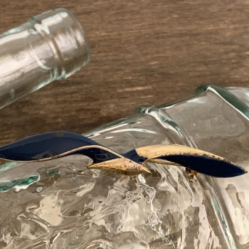 ドイツ 70s ブローチ 渡り鳥 ゴールド ブルー ヴィンテージ