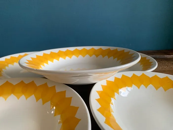 フランス 70s sarreguemines サルグミンヌ 陶器 アンティーク 皿 ステンシル グリーン チェック 3枚セット【オランダから直送】