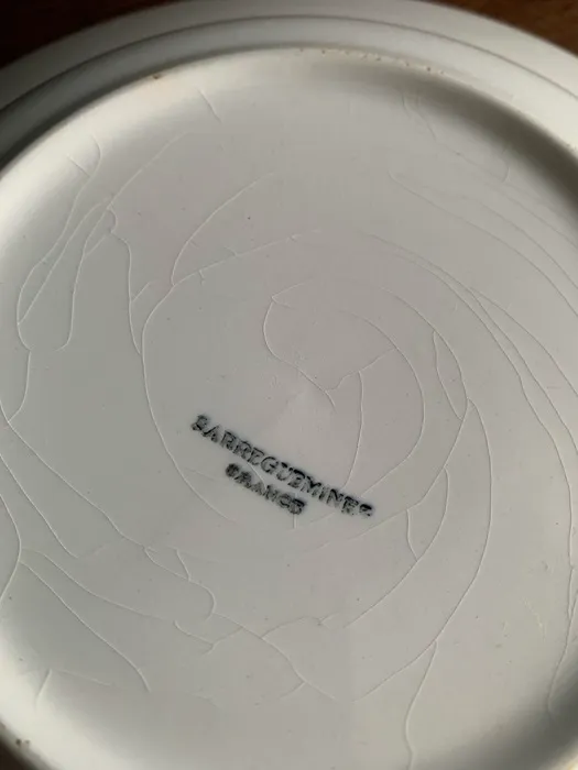 フランス 19世紀後半 サルグミンヌ 陶器 アンティーク 皿 お花 ブルー