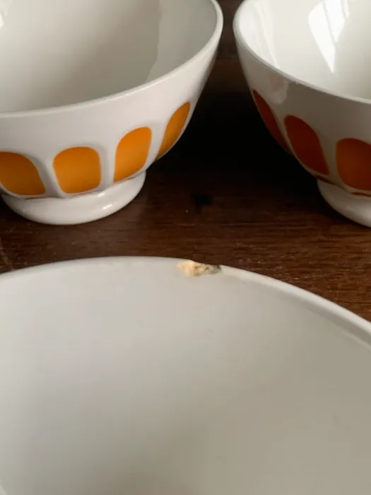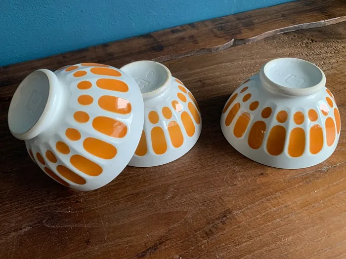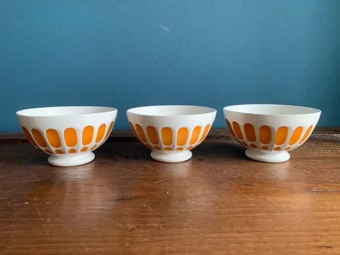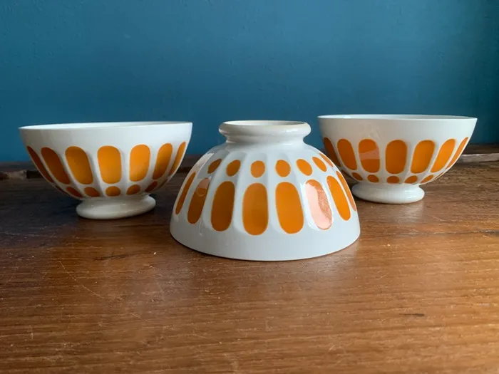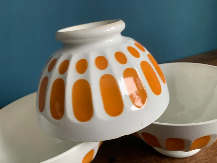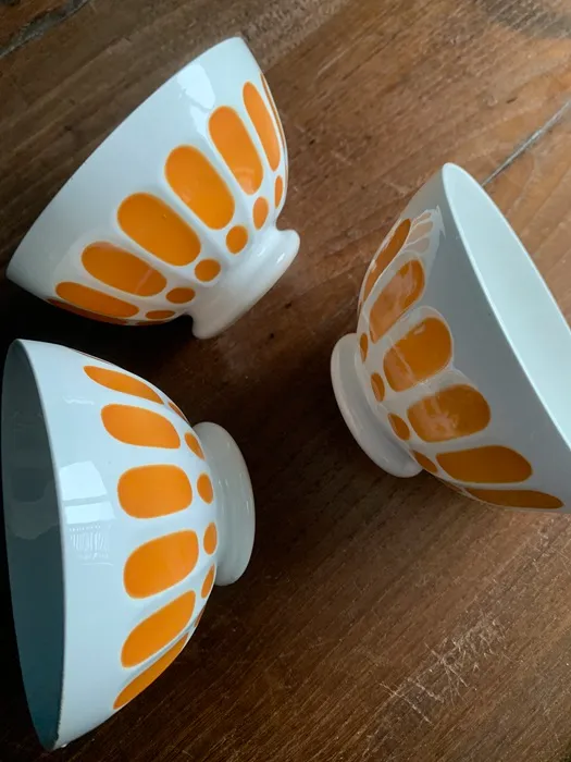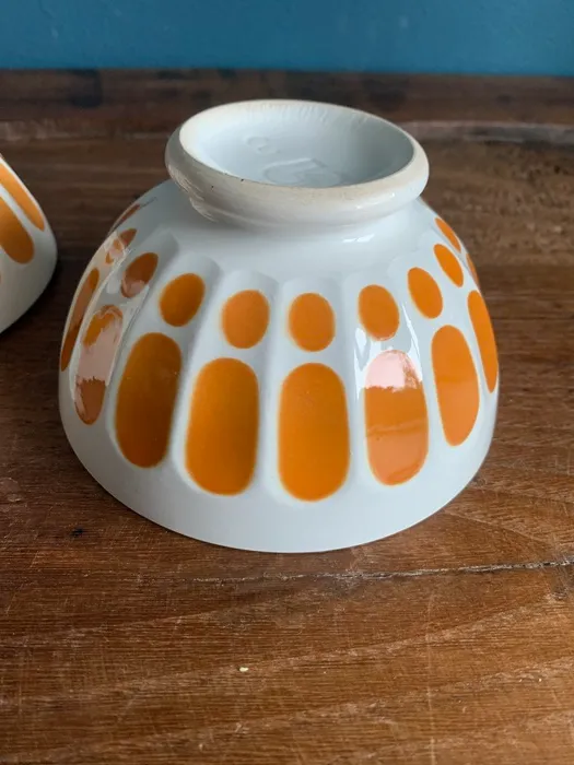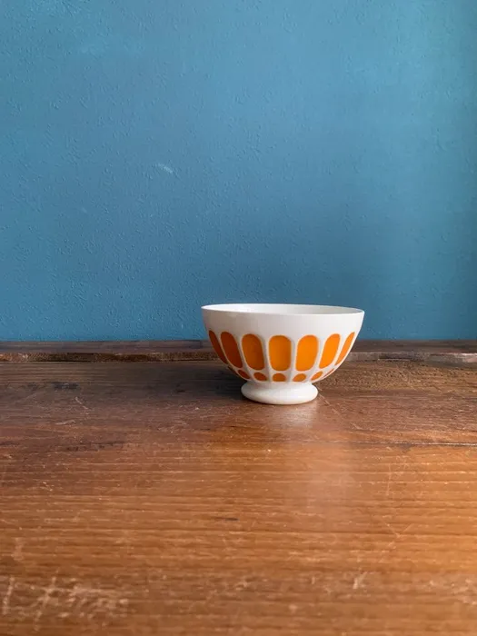 1790年にフランスのサルグミンヌ地方で創業された歴史深いsarreguemines(サルグミンヌ)の陶器製のヴィンテージカフェオレボウル。色鮮やかなオレンジイエローがレトロで可愛らしい作品。※オランダからの直送品です。
