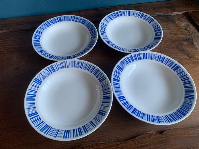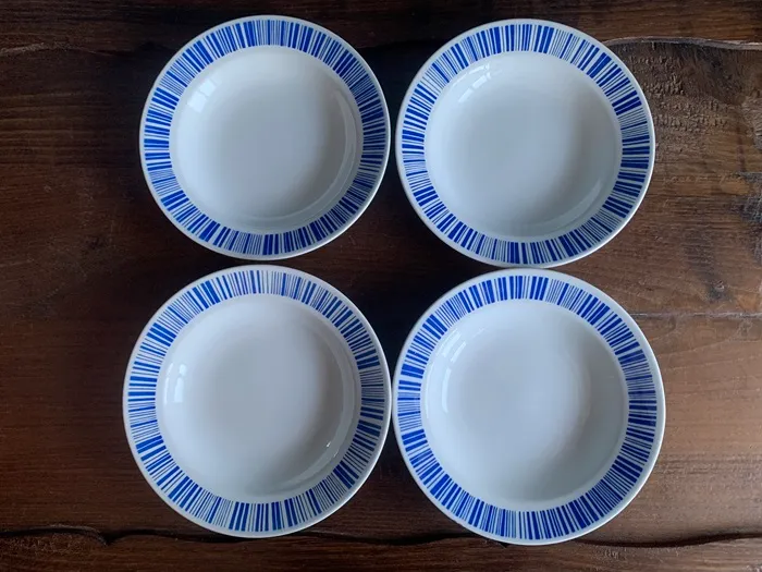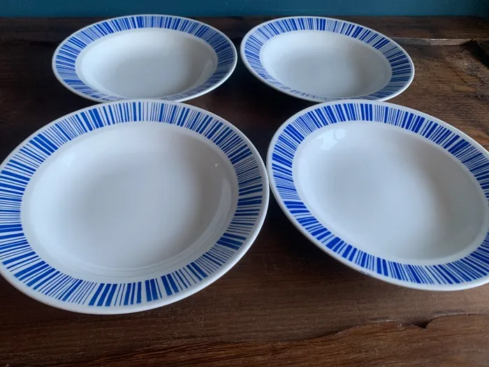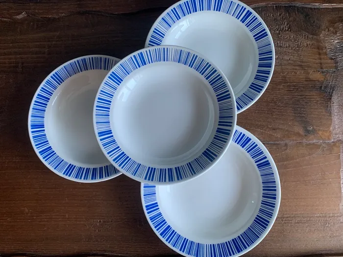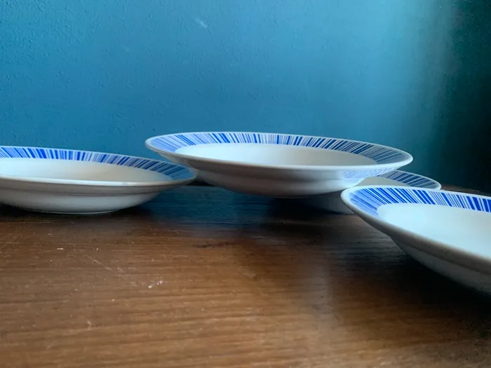 1848年にベルギー東部のLa Louviereにて創業されたBOCH(ボッホ)・B.F.K(Boch Freres Keramis)の陶器アンティーク・ヴィンテージプレート・皿。ブルーのストライプがクラシックで可愛らしい作品。。※オランダからの直送品です。