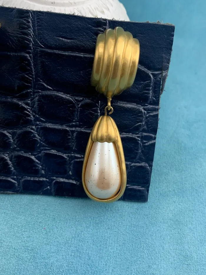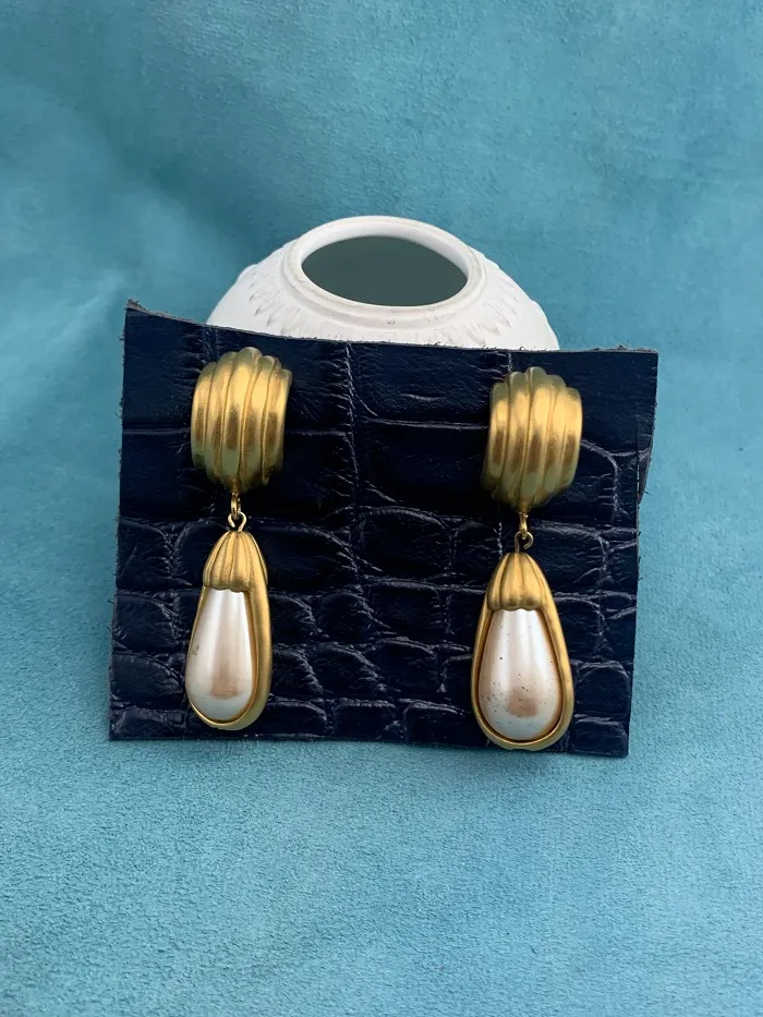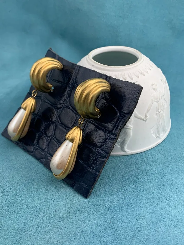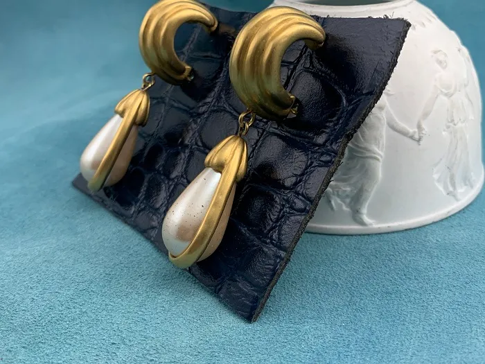 フランス人のデザイナー「Hubert de Givenchy」によって1952年に設立されたファッションブランド「GIVENCHY(ジバンシィ)」の大ぶりゴールドトーンゆらゆらヴィンテージイヤリング。マッドゴールドのフレームと大粒のイミテーションパールが優雅で美しい作品。