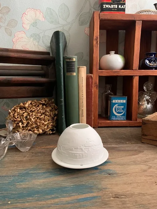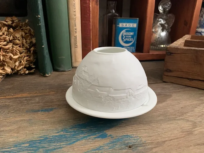 1863年にフランスの「Limoges(リモージュ)」にて「Rmi Delinires」によって創立された「L. Bernardaud & Cie(リモージュベルナルド)」の白陶器のヴィンテージリトファニーキャンドルホルダー・スタンド。LIMOGES磁器独特の白いドーム型陶器に描かれたクラシックなレリーフの模様がキャンドルの光で美しく透けて浮かび上がる幻想的な作品。