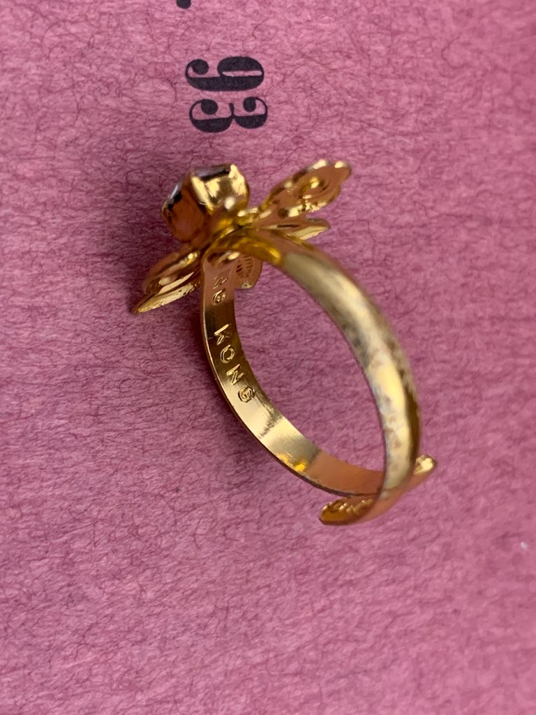 80s リング 指輪 ガラス お花 ゴールド ヴィンテージ  (GF0000116)