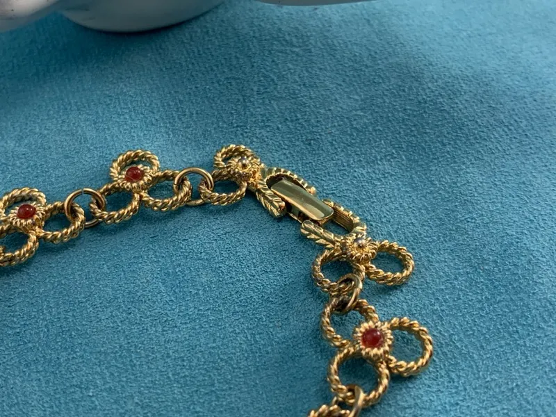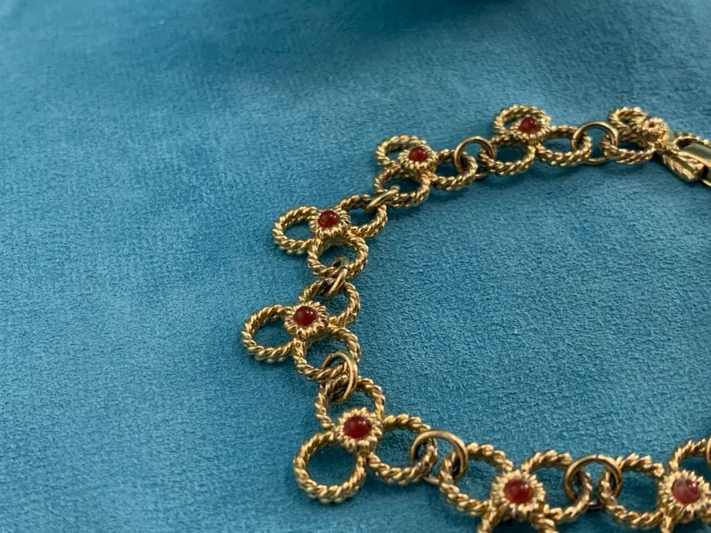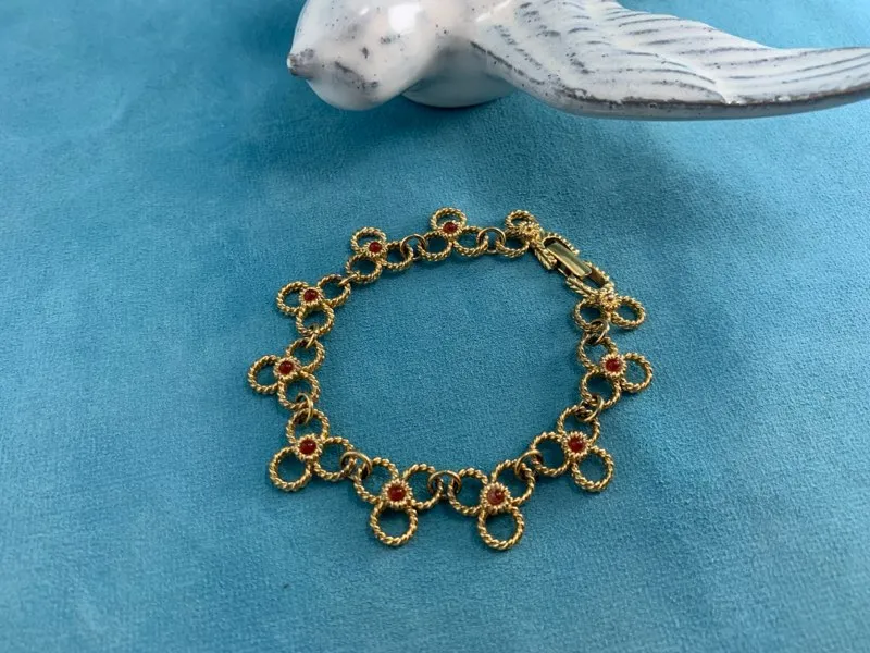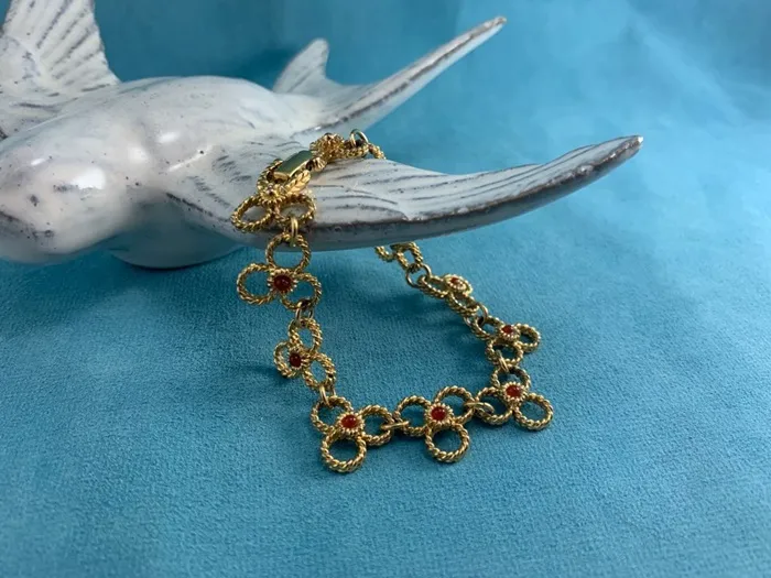 1929年にアメリカ東海岸にて二人の兄弟「Michael and Joseph Chernow」によって設立されたコスチュームジュエリーブランド「MONET(モネ)」のヴィンテージゴールドチェーンブレスレット。ゴールド調のお花のようなモチーフが可愛らしい作品。